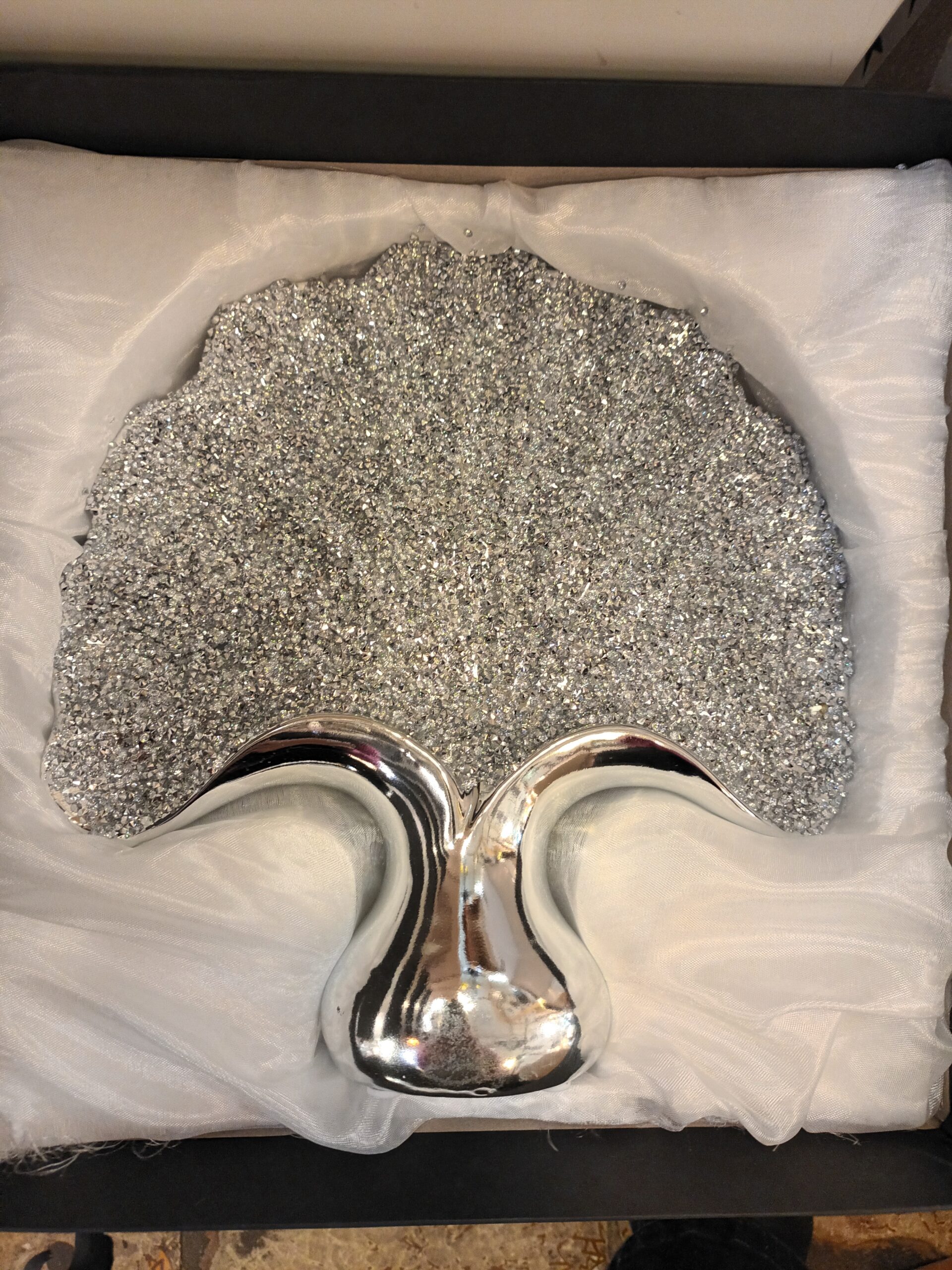 Blad zilver met glitter groot
