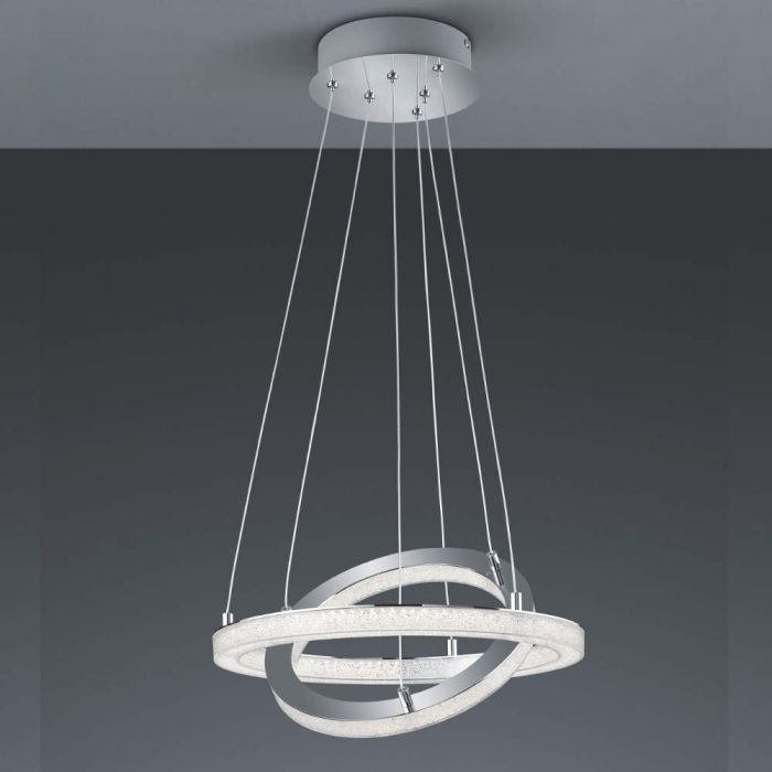 Een moderne hanglamp van het merk Trio uit de RL-collectie. De behuizing van deze lamp is gemaakt van metaal in de kleur chroom en de kap van het armatuur van kunststof in de kleur wit. De lamp heeft een ingebouwde SMD-LED lamp met een wattage van 32W. De lamp is een goed voorbeeld van een lamp die goed staat in de eetkamer boven de eettafel. De lichtsterkte van deze armatuur kan via de normale lichtschakelaar op 3 verschillende niveaus ingesteld worden. Let wel, deze hanglamp dient op een normale lichtschakelaar geplaatst te worden en is niet geschikt voor een externe dimmer.