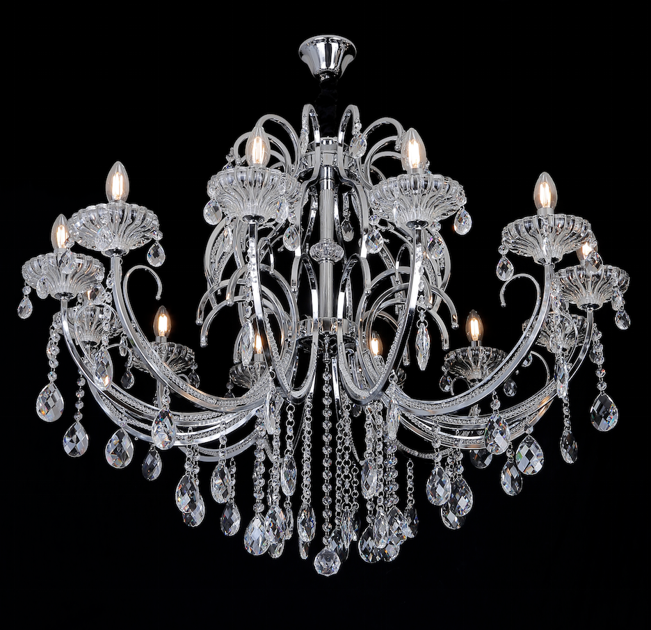 Kroonluchter 12 lichts goud met blank glas 17125-12
