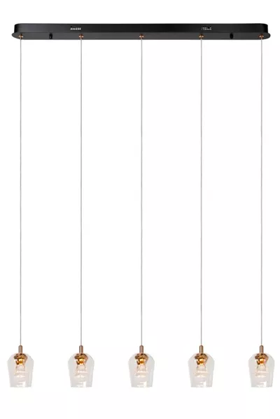 Breng stijl en functionaliteit samen met de BERLIANE hanglamp van Lucide. Deze moderne lamp met een royale diameter van 34 cm combineert een strak design met hoogwaardig licht. Uitgerust met vijf geïntegreerde LED-lampen van 4W, biedt de BERLIANE warm wit licht (2700K) dat dimbaar is voor een perfecte sfeer. De transparante glazen kap en gouden details zorgen voor een elegante uitstraling, terwijl het zwarte aluminium frame een krachtig contrast biedt. Daarnaast beschikt deze lamp over een hoogwaardige facet geslepen vervangbare LED-module, die zowel een schitterend lichteffect als duurzaamheid garandeert. Dankzij de verstelbare hoogte tot 164,5 cm is deze lamp veelzijdig inzetbaar in verschillende ruimtes. Creëer een verfijnde ambiance met de BERLIANE.