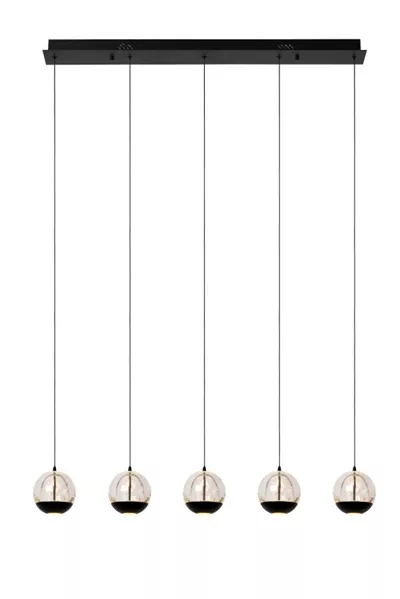 Sentubal is niet zomaar een hanglamp, maar wel een die volop inzet op beleving. Door zijn moderne en luxueuze vormgeving is dit gegarandeerd een eyecatcher in jouw interieur. Vanuit de plafondplaat dalen op een rechte lijn vijf pendels neer. Die varieer je zelf in hoogte, gaande van 70 tot 150 centimeter. Onderaan de elegante stalen kabels vind je een bolvormige lampenkap uit hoogwaardig glas. De sterke detaillering speelt met contrasten en binnenin vind je een geïntegreerde ledlichtbron met warm wit licht. Door deze hanglamp aan te sluiten op een dimmer breng je sfeer naar elke ruimte van het huis.