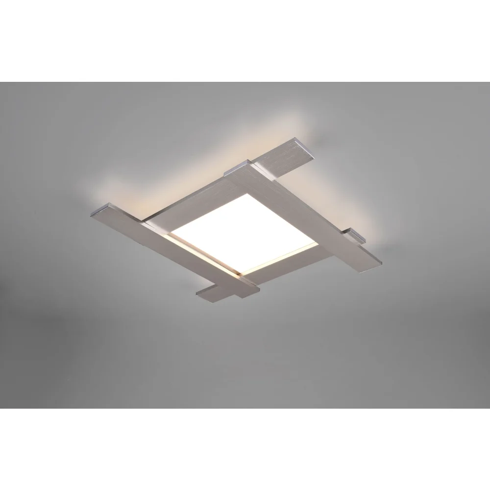 Creëer een moderne en harmonische woonsfeer met de decoratieve lampen van de serie BELFAST. De plafondlamp beschikt over een directe en een indirecte verlichting die apart van elkaar bediend kunnen worden. De 59 x 59 cm grote lamp zorgt voor een aangename uitlichting en stijlvolle lichtaccenten. Het design is mat nikkel.