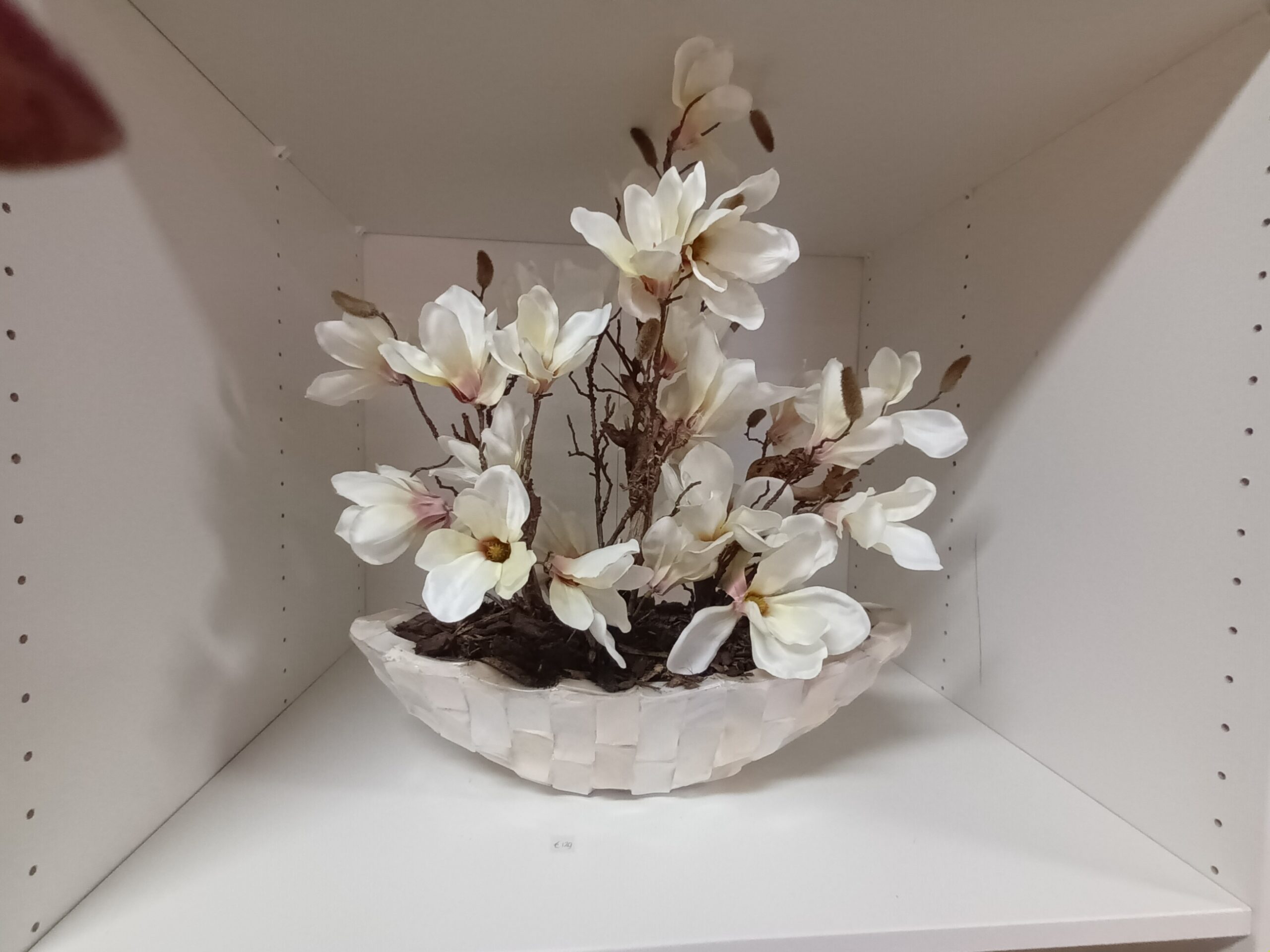Schelpenvaas wit met magnolia aantal