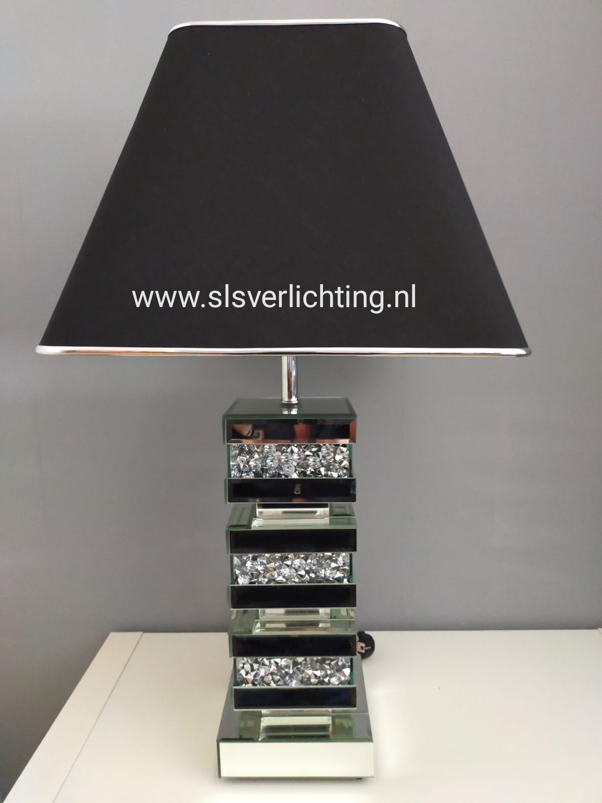 Tafellamp chroom met 2 bollen en grijze velvet kap