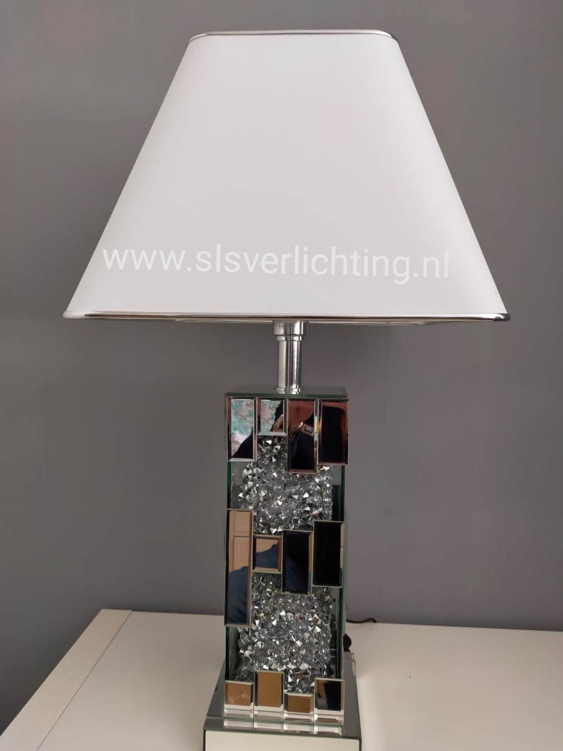 Tafellamp spiegelglas met gruis en witte kap aantal