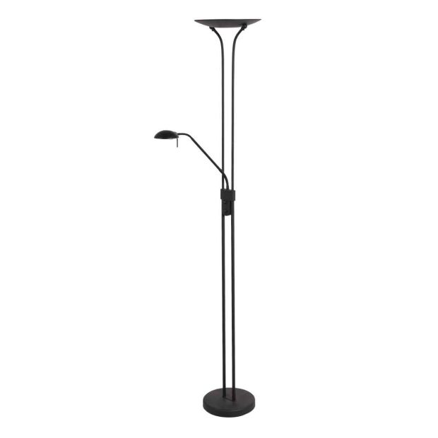 0Ontdek de indrukwekkende zwarte vloerlamp 7500ZW uit de Biron-serie. Deze vloerlamp is vervaardigd van zwart staal. De leesarm is dankzij twee buigpunten eenvoudig te richten. Het licht van de leesarm en de uplight zijn afzonderlijk te bedienen. Deze vloerlamp heeft namelijk een dubbele draaidimmer. De uplight heeft een vaste LED-module van 23 watt met een kleurtemperatuur van 2700 Kelvin en een lichtopbrengst van 2000 Lumen