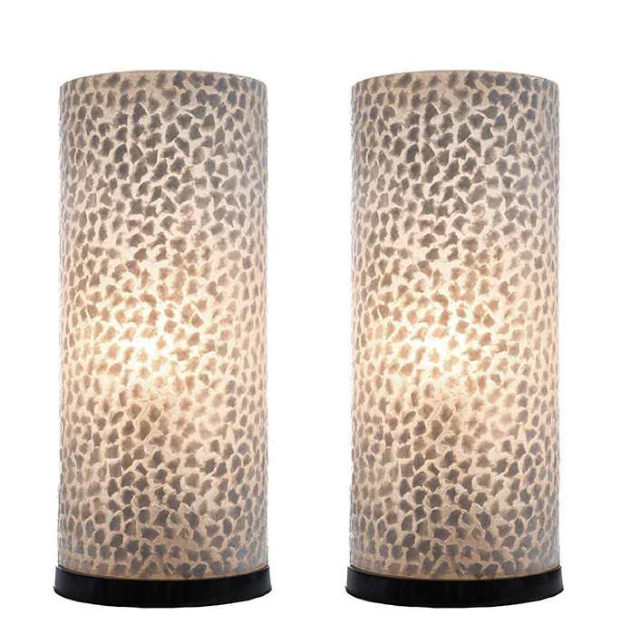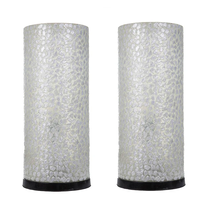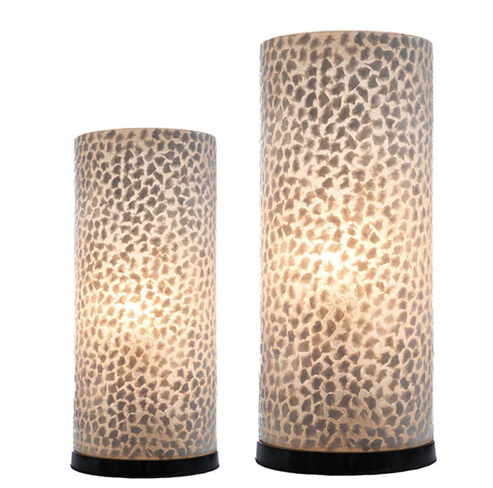 2 sfeervolle tafellampjes in 30 of 40 cm. De lampjes zijn handgemaakt van kleine stukjes schelp, die zorgen voor een warme en natuurlijke uitstraling. Super leuk als nachtlampje of op een dressoir.
