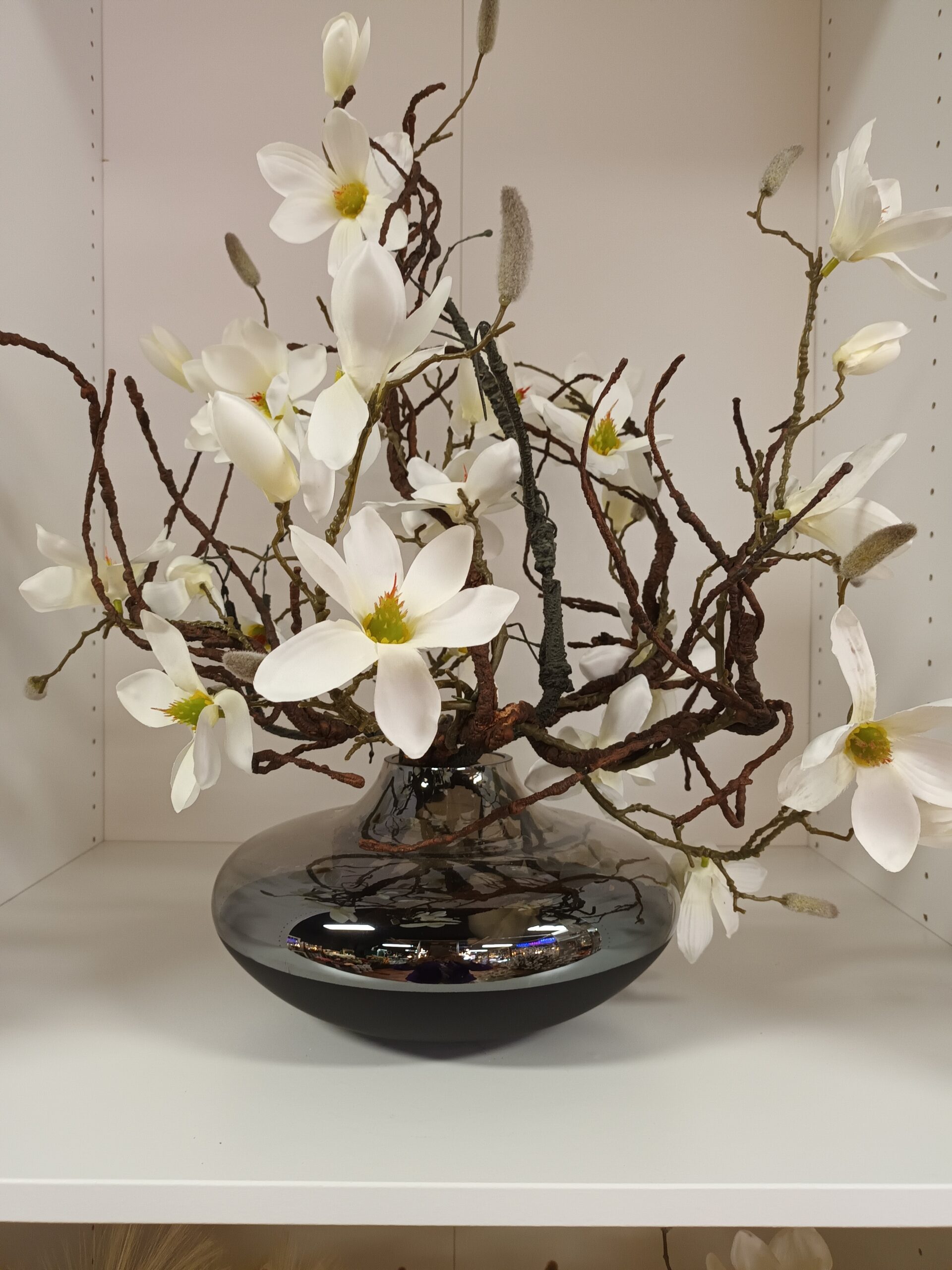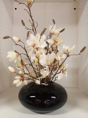 Zwart /glazen schaal met magnolia